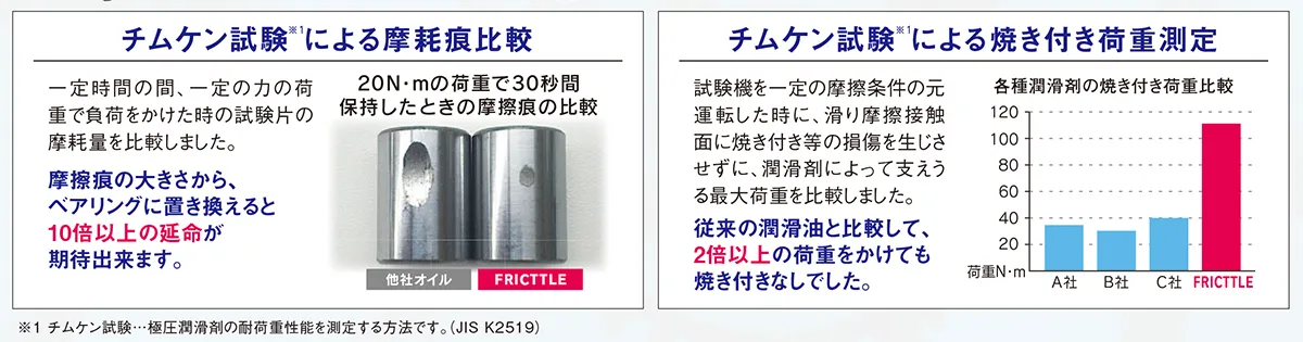 塩素フリー、極厚強化、低粘度 新商品 超潤滑剤FRICTTLE2の強力な潤滑力