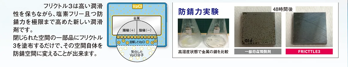 塩素フリー、極厚強化、低粘度 新商品 超潤滑剤FRICTTLE3の強力な防錆力