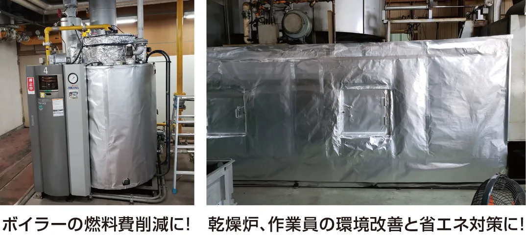 機械や壁へ施工することで燃焼効率が向上し、燃料費削減が期待できます。また作業所の熱中症対策にも有効!
